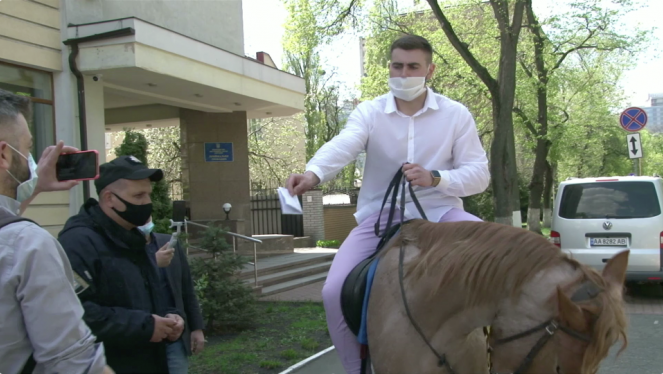 На коні до Авакова. Киянин Валентин Бур’янов, якого намагалися оштрафувати поліцейські за порушення правил карантину, приїхав верхи...