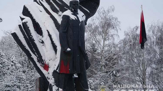 Невідома особа пошкодила пам’ятник Степану Бандері, що по вулиці Соломії Крушельн...