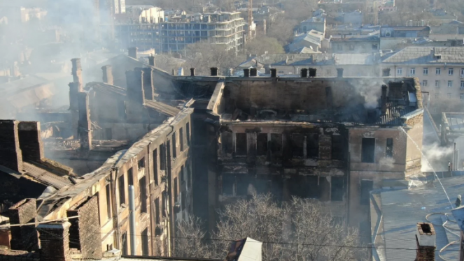 Після масштабної пожежі, яку півдоби намагаються загасити пожежники у в Одеському коледжі економіки, права та готельно-ресторанного бізн...