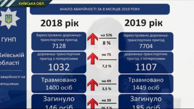 У поліції Київської області кажуть, що аварій з постраждалими в 2019 вже майже стільки ж як за весь 2018 рік. Збільшення аварій пов`язую...