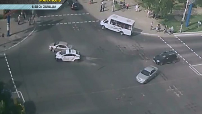 Ця ДТП сталася вдень у Маріуполі. На перехресті зіштовхнулися патрульний Пріус та легковик Шевроле. Оператор – М.Рябченко ...
