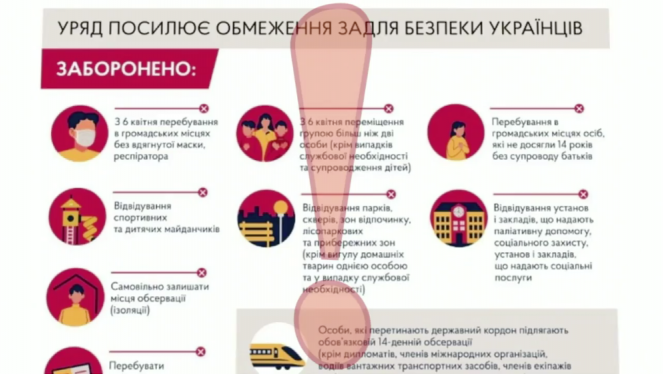 Обіцяні обмеження таки будуть. Уряд ухвалив, що від 6 квітня, а це понеділок, в Україні починають діяти більш жорсткіші умови ...