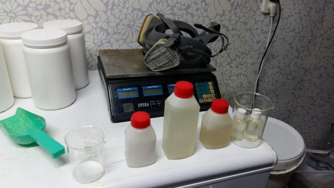 Під час обшуку поліцейські вилучили лабораторне обладнання для виготовлення прекурсору «фенілнітропропен» - колби, мірні прилади, інгред...
