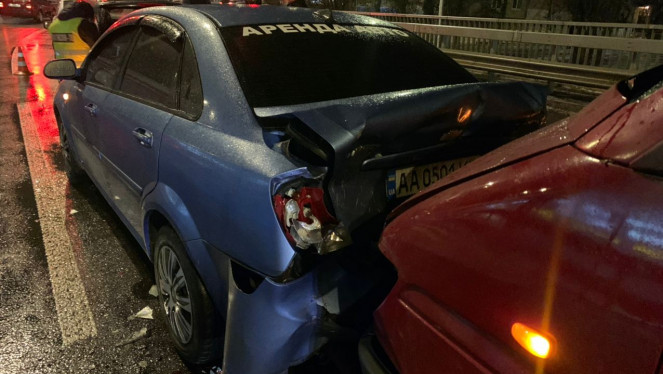 Потрійна карколомна автотроща трапилася у Києві на мосту Патона у ніч на 7 лютого. Пошкоджений відбійник, потрощені автомобілі й трав...