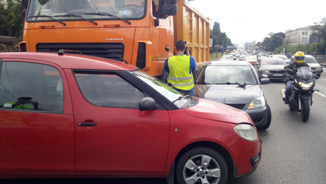 Потрійна автотроща трапилася у Києві на проспекті Перемоги. Зіштовхнулись вантажівка та два легковики: Mitsubishi і Skoda. Як р...