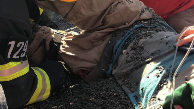 О 15:40 на спецлінію 101 надійшло повідомлення про те, що негайної допомоги потребує чоловік, ногу якого затягло у завантажувальний шнек...