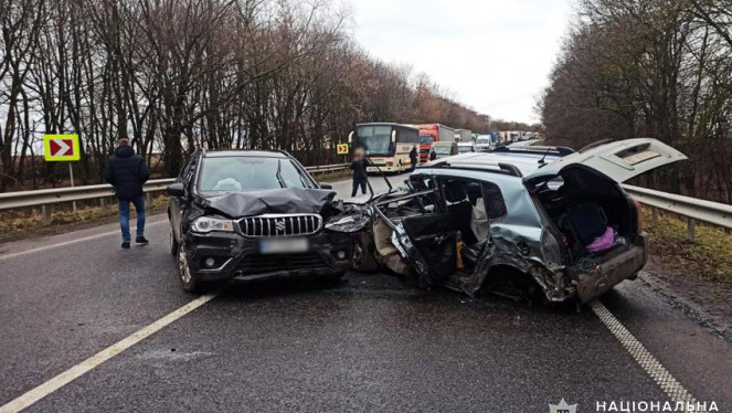 На Хмельниччині поліцейські встановлюють обставини ДТП за участю чотирьох автомобілів, в якій травмувалось двоє осіб Дорожньо-транспо...