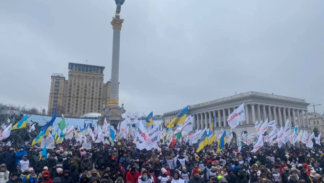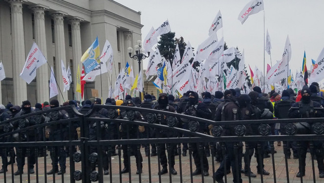 У Києві на Конституційній площі вкотре зібралося чимало активістів, а вулиця Грушевського в цьому місці частково заблокована мітингарями...