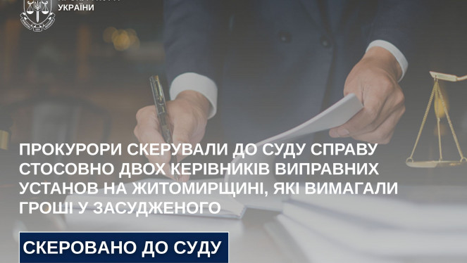 У січні 2025 року керівники двох виправних установ, розташованих у м. Бердичеві та Бердичівському районі, вимагали у засудженого щомісяч...