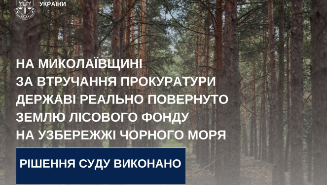 Миколаївською окружною прокуратурою вжито заходів до реального повернення у власність держави земельної ділянки лісового фонду загальною...