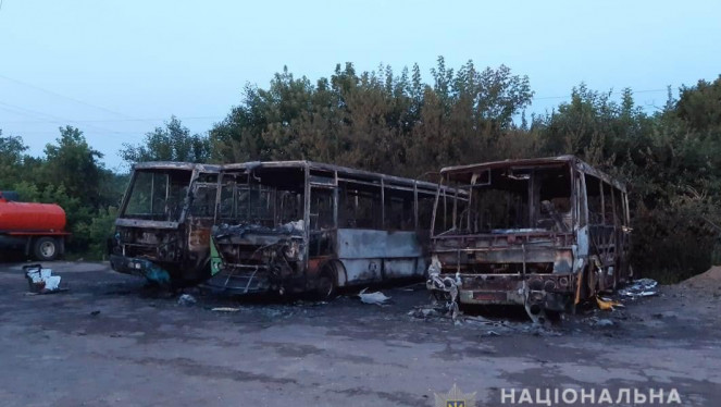 Загорання автобусів сталося у селі Бишів близько 1 години ночі. На місці події працювали рятувальники, працівники Макарівського відділен...