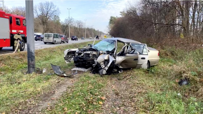 Автомобіль Daewoo Nexia злетів з дороги у кювет, за тим авто врізалось у металевий стовп. Машина отримала серйозні пошкодження. На місц...
