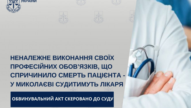 Прокурорами Окружної прокуратури міста Миколаєва скеровано до суду обвинувальний акт стосовно лікаря відділення хірургічної стоматології...
