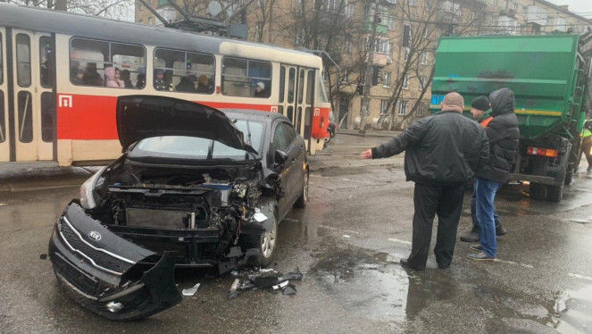 У Києві на Вулиці Кирилівській легковик врізався у сміттєвоз. ДТП трапилося сьогодні в другій половині дня. Про це знімальна група «Магн...