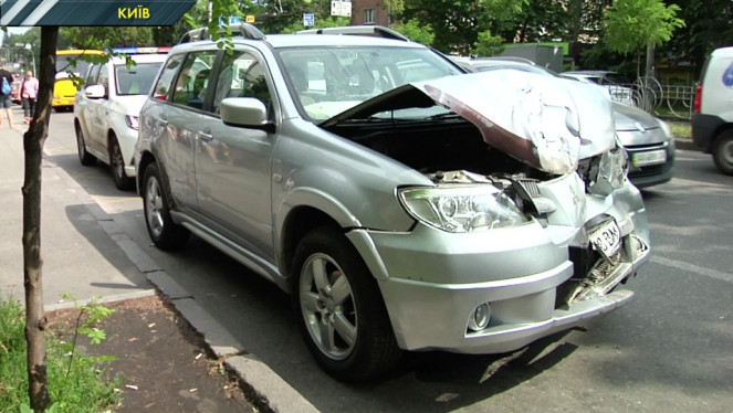 Вулиця Щусєва. Київ. Довжелезний затор. А його причина ось. Потрощений позашляховик Мітсубісі та побитий бус Івеко. Тут сталася аварія. ...