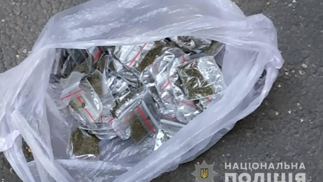 Поліетиленовий згорток з рослинною речовиною, що за попередніми даними, є наркотичним засобом поліцейські виявили у перехожого на вулиці...