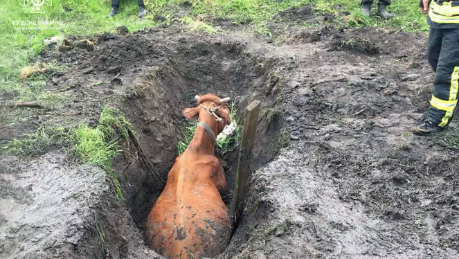 До рятувальників Прилуччини зателефонувала жінка та повідомила, що її корова, повертаючись з пасовиська, втрапила у глибоку яму на власн...