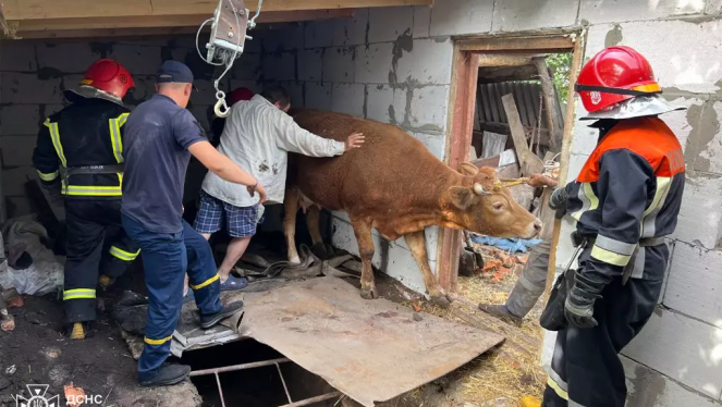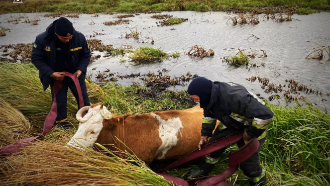 Бійці ДСНС рятували корову, яка впала у колишню пожежну водойму у селі Пединки, що на Любарщині. Операція з порятунку тривала майже дві ...