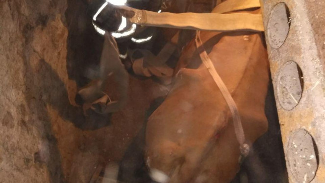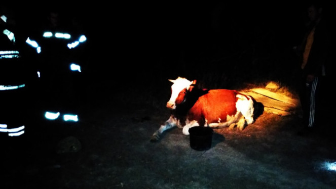 До Служби порятунку надійшла інформація, що у м. Маріуполі Донецької області біля пішохідного моста через р. Кальміус корова впала в яму...