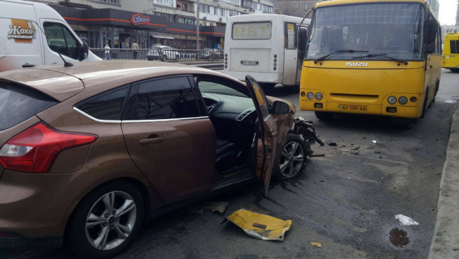 У Києві на Чоколівському бульварі легковик «Форд» наздогнав маршрутку. Подробиці ДТП знімальна група «Магнолії-ТВ» дізналася на місц...