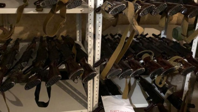У чоловіка вилучили кілька автоматів, рушниць, пістолетів, магазинів, ракетниць, реактивних протитанкових гранат, порохових двигунів, по...