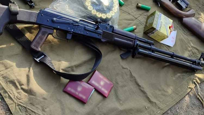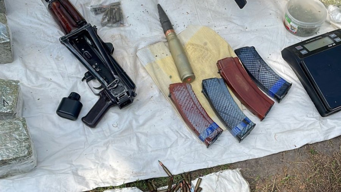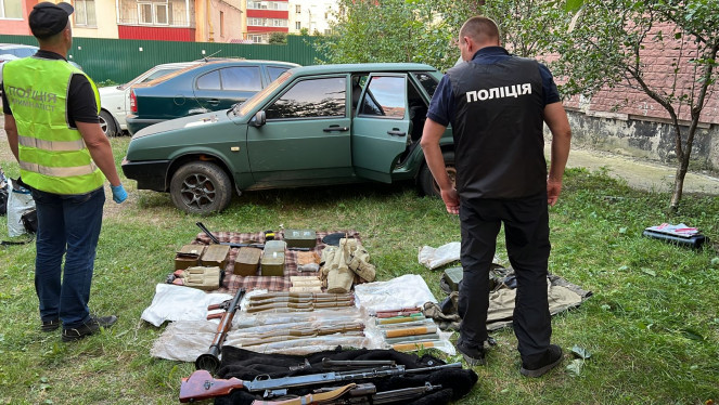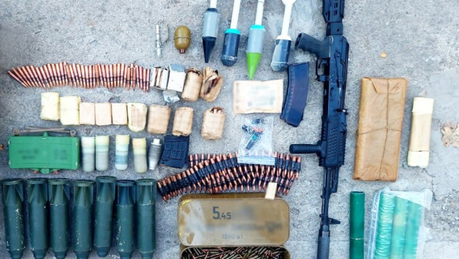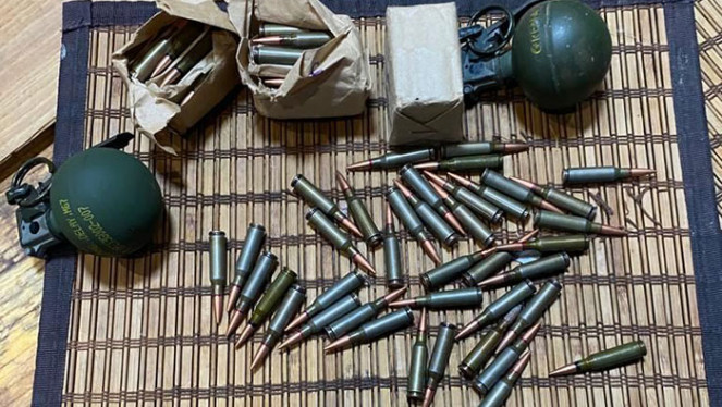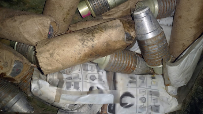 Ємності з пластидом, три мішки з порохом, три гранати з запалами, два артилерійські снаряди, різнокаліберні патрони, інші вибухові речов...