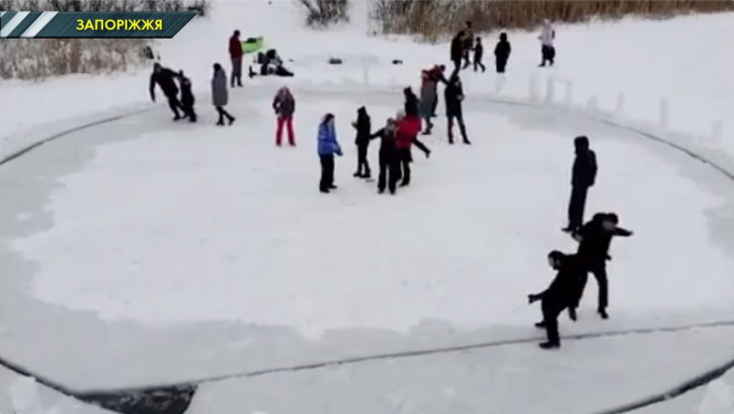 На Запоріжжі дітям зробили карусель з льоду. Місцеві вирізали велике коло з льоду і розкручували його як гойдалку. Адже морози впал...