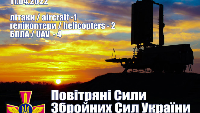 11 квітня зенітними-ракетними підрозділами Повітряних Сил та ППО Сухопутних військ Збройних Сил України знищено сім повітряних цілей рос...