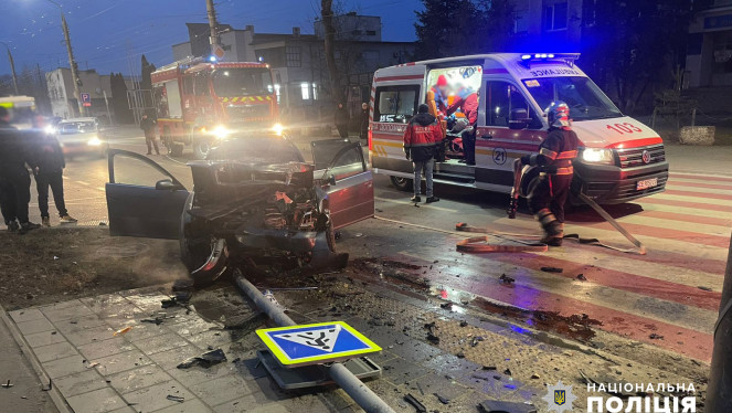 У Чернівцях легковик «Mersedes-benz E-Class» влетів у стовп, поранену водійку діставали рятувальники