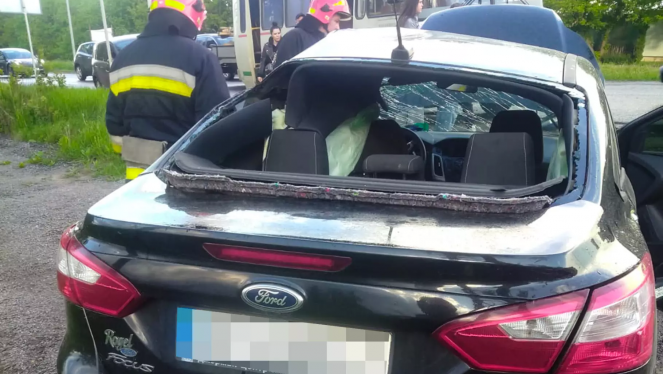 На Вінниччині внаслідок зіткнення легковика з двома автобусами постраждала літня жінка, - ДСНС. ФОТО