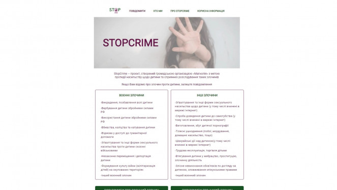StopCrime – проєкт, створений громадською організацією «Магнолія» з метою протидії насильству щодо дитини та сприяння розслідуванню таки...
