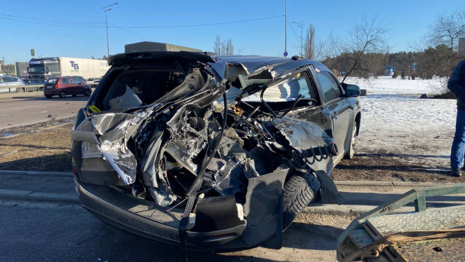 Аварія сталася у напрямку Либідської. Як вдалась з’ясувати, автомобіль Range Rover зупинився на червоний сигнал світлофору, аби пропуст...
