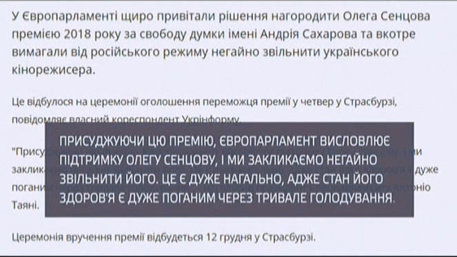 Український режисер Олег Сенцов став лауреатом премії Сахарова. На засіданні Європарламент у Стразбурзі його оголосили переможцем ...
