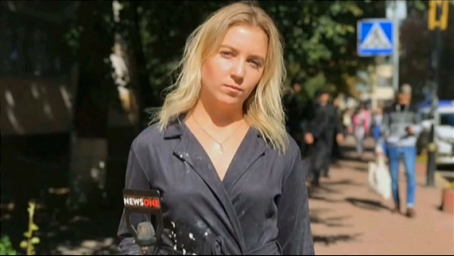 Під Міністерством внутрішніх справ знову постраждала журналістка. Дівчина готувалась до включення з місця події коли до неї підбіг чолов...