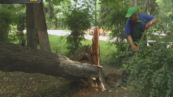Київ. Вулиця Грушевського. Тут за якихось декілька кроків від Верховної Ради не витримало дерево. Впало просто на дорогу і водіям нароби...