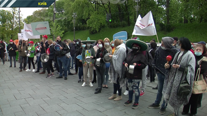 Близько 500 людей вийшли на акцію простету піж стіни Кабінету міністрів. Із собою взяли ложки, черпаки, тарілки та кастрюлі і почали сту...