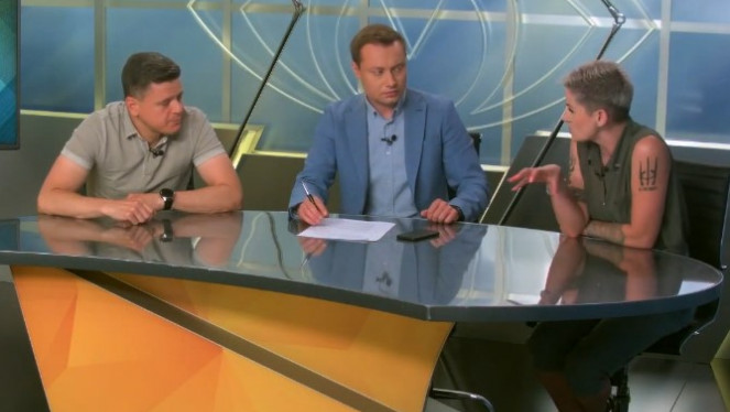 Ток-шоу "Відкритим текстом" на телеканалі "ЧП.INFO". Гості студії: - Дана Виноградова, спікер "Правого Сектора" - Олександр Скубч...